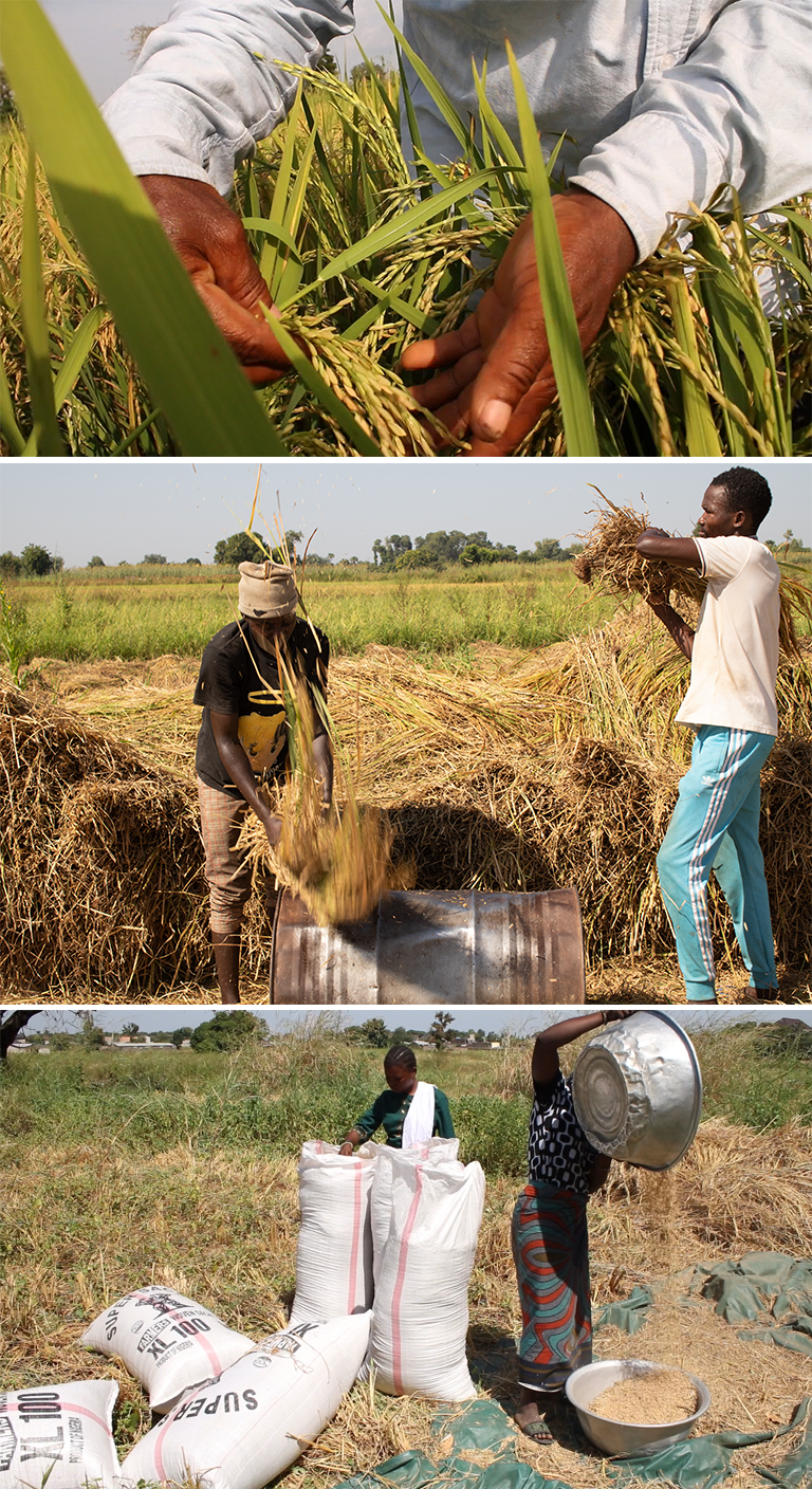 Mise en valeur de 650 hectares de superficies irriguées pour la production intensive de riz et de maïs, grâce aux aménagements hydroagricoles et à l’accès facilité aux intrants modernes.